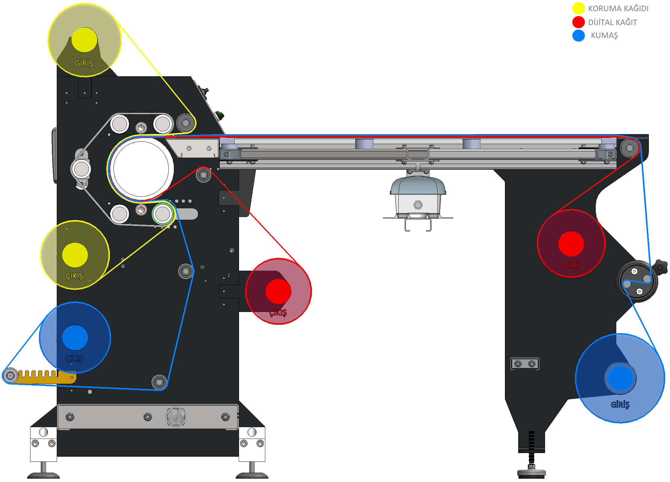 Tüm makinelerimiz, endüstriyel kullanıma uygun olarak güçlendirilmiş kevlar hammaddesi ile üretilmiş %100 Nomex keçeler kullanmaktadır. Bu keçeler, herhangi bir koşulda esnemezler ve uzun ömürlüdürler. Ortalama ömürleri, kullanıma bağlı olarak değişiklik göstermekle birlikte genellikle 1 ila 3 yıl arasındadır. Makinede yer alan otomatik keçe merkezleme sistemi sayesinde, keçenin sağa ya da sola kayması önlenir. Bu sistem elektrik motoru tarafından kontrol edilir. Hava kompresörü gerektirmez. Bu sistem, keçenin gerdirilmesi ve merkezlenmesi için oldukça etkilidir ve işletme sahiplerinin keçe bakımı konusunda endişelenmesini gerektirmez. Ayrıca, otomatik merkezleme sistemi sayesinde operatörlerin sürekli olarak keçeyi ayarlamalarına gerek yoktur. Bu da zaman tasarrufu ve iş verimliliği sağlar.