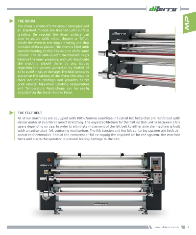 years depending on use. In order to eliminate movement of the felt belt to either side the machine is built